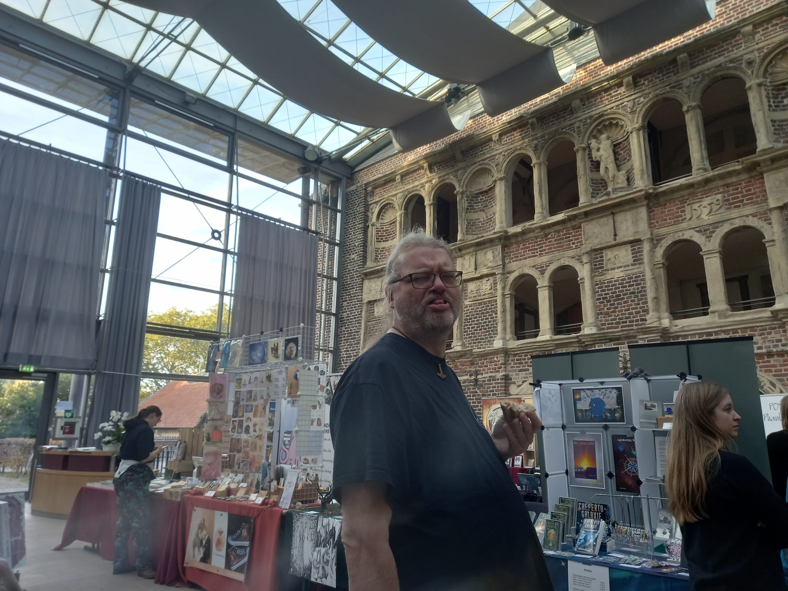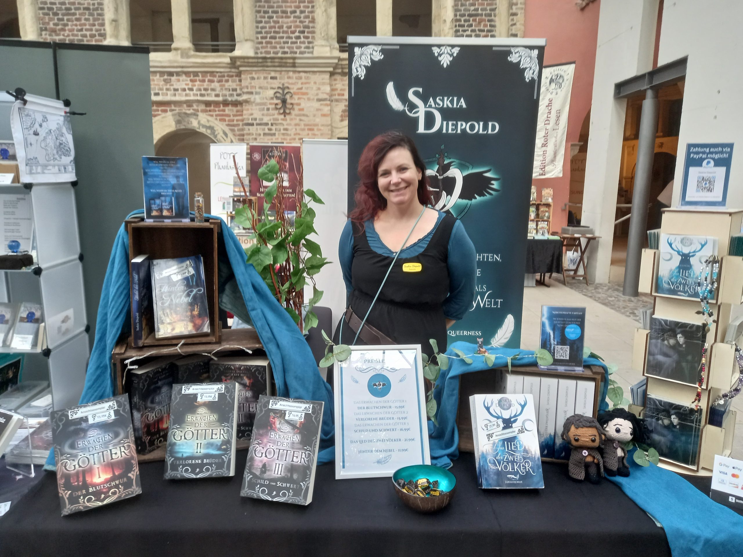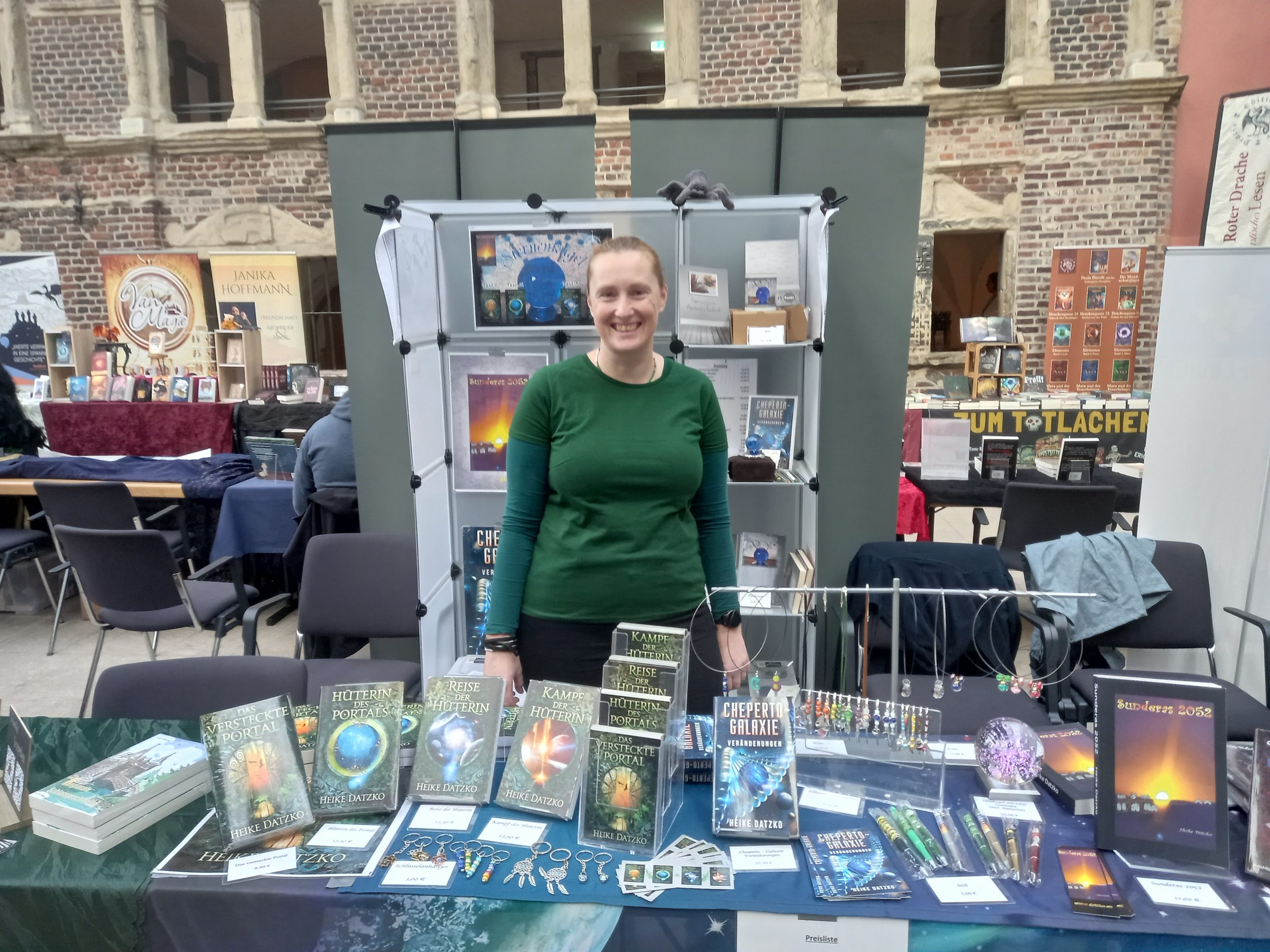 Es hat mir außerordentlich gut gefallen, nur irgendwie hat irgendein Hund (nicht meiner!) meine Fotos gefressen. Daher heute nur zwei Bilder, die ich auf Insta gepostet hatte. Extrem verwirrend. Das einzige andere Foto, das ich noch gefunden habe, ist eins vom Stand des Hybrid-Verlages dort, daher ist das mein heutiges Titelbild. 🙂